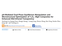 近日,研究室在《ACS Applied Materials & Interfaces》发表题目为“pH-Mediated Dual-Phase Equilibrium Manipulation and Microstructural Optimization of Y2O3–MgO Composites for Enhanced Mid-Infrared Transparency”的学术论文,博士研究生蔡欣成为第一作者,四川大学齐建起教授、成都大学黄章益特聘研究员为通讯作者。